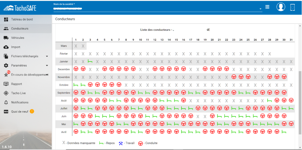 Logiciel de lecture et de gestion règlementaire des données tachygraphes